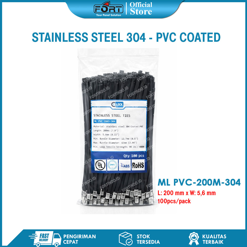 Kabel Ties Stainless Steel Lapis Pvc Anti Karat ML PVC-200M-304 Cable Tis Coated Hitam Stainless Steel 304 FORT
