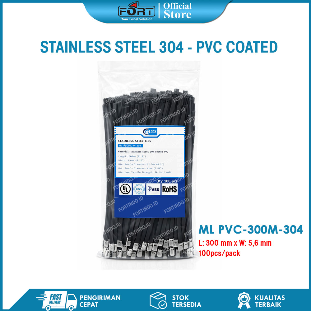 Kabel Ties Stainless Steel Lapis Pvc Anti Karat ML PVC-300M-304 Cable Tis Coated Hitam Stainless Steel 304 FORT